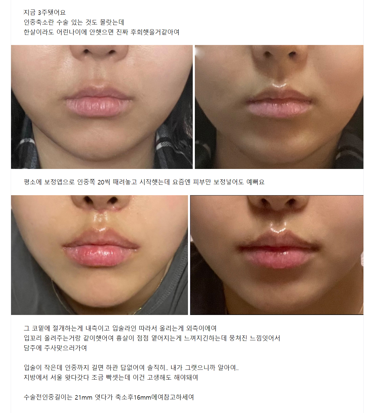 인중축소수술 3주차 후기, 전후사진이랑 솔직한 심정 정리